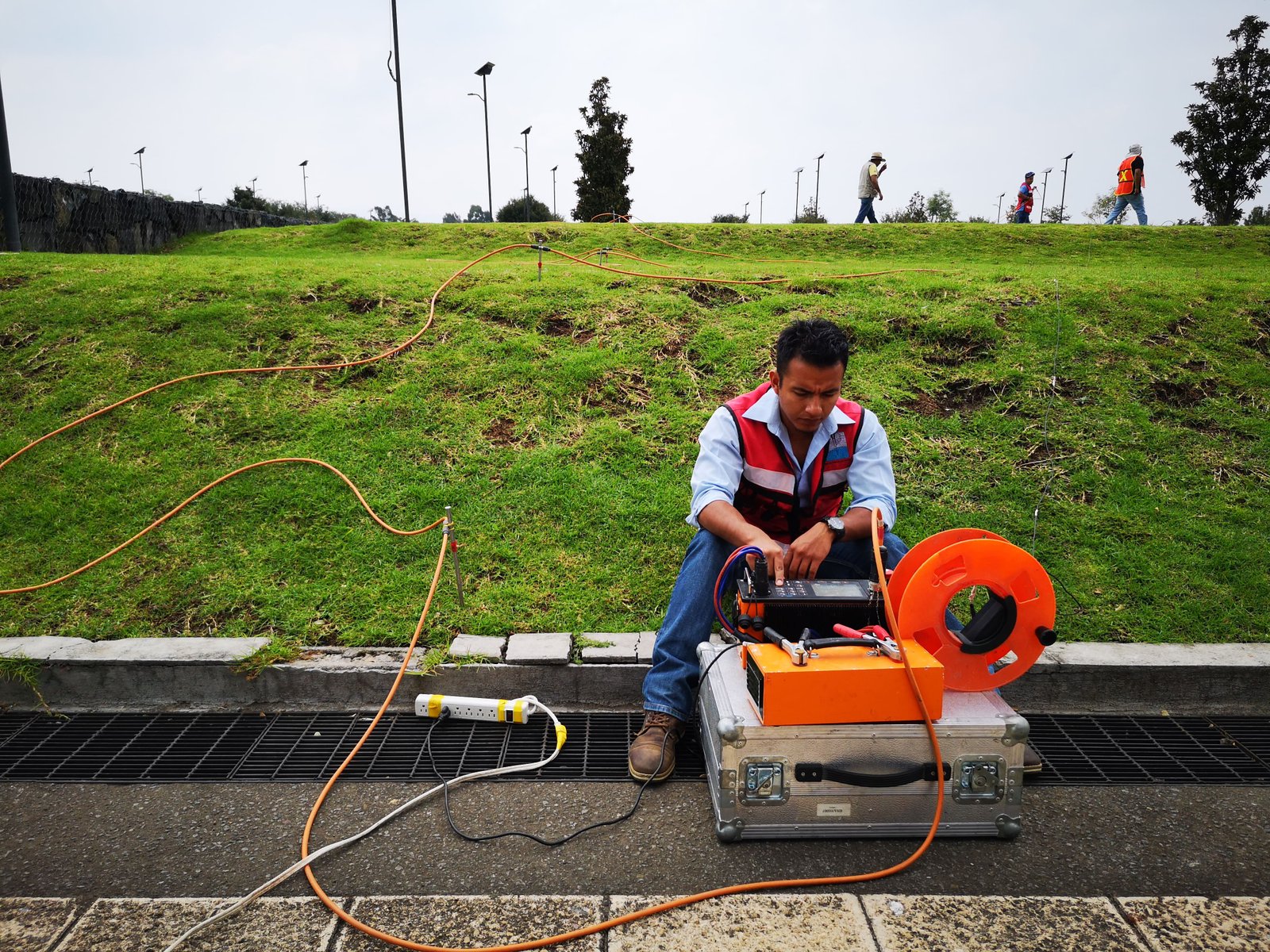 - - Geofísico: Tiene como objetivo identificar anomalías que puedan asociarse a posibles cavidades, fallas, agrietamientos, discontinuidades o zonas susceptibles a asentamientos diferenciales (subsidencia) dentro del predio de interés.